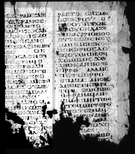 [lac] nos ehrai: ejwf nouduranos epefran pe eillariCos eu hellHn pe`; af yine n+sa no jf ebol h_n tm_n tero.bl; on norios de nef kw n+htHf e pnoute m+n pefmonoge nHs n+yHre E peF m_n pef D etouaab. mpefsmelli naf harof.bl; oute m+pef t_nnoou m+p[lac] [lac] ekwstan [tino]upolis. [lac]wy gar [lac] eyt_rt_rpde [lac] alla af [lac] pef [lac] [lacuna] |